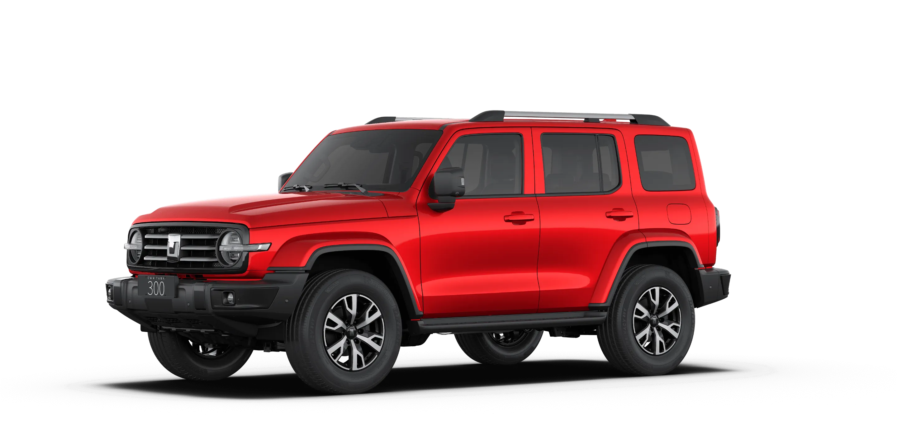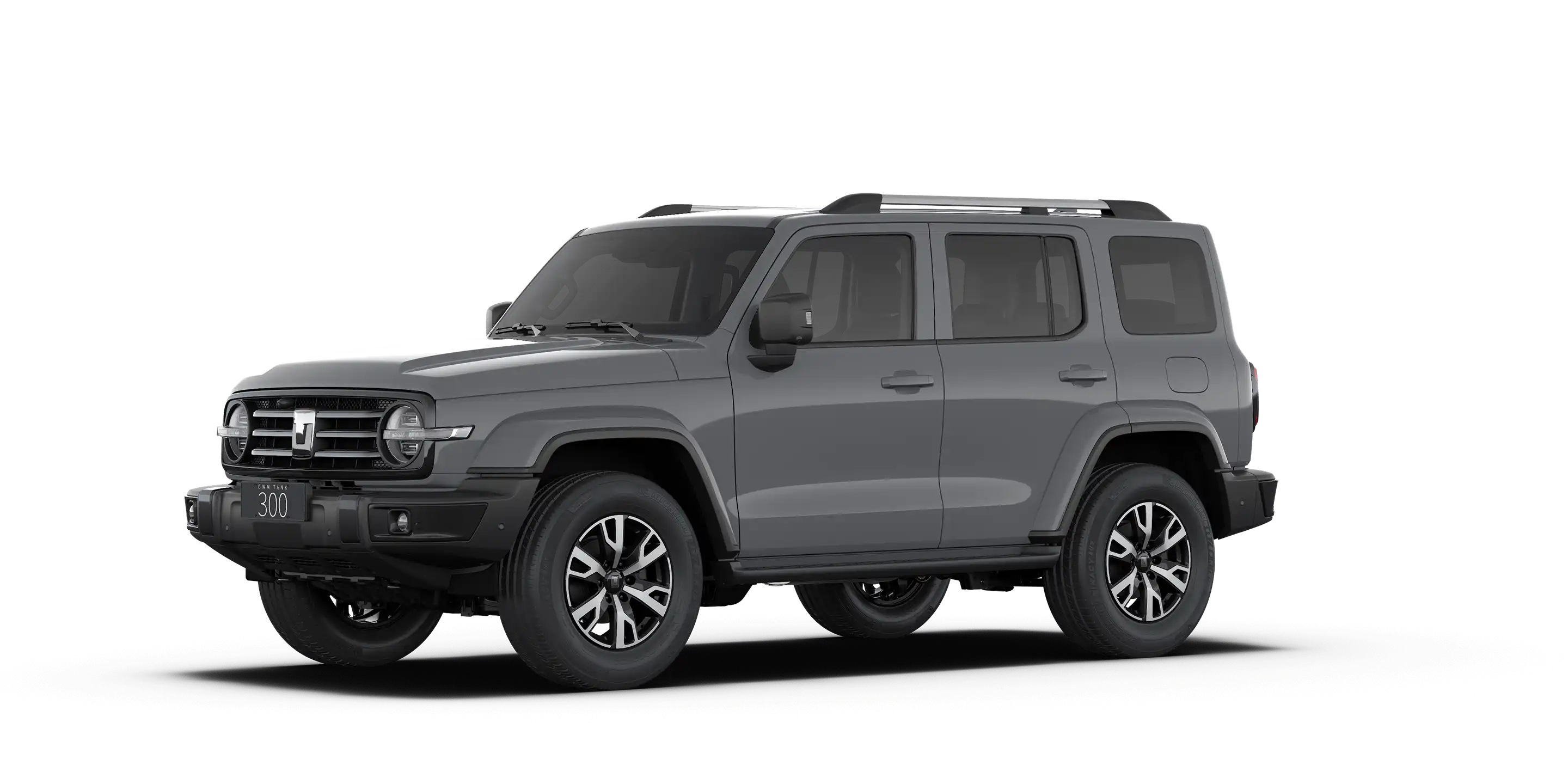 Con una parrilla geométrica, la GWM Tank 300 HEV fusiona el estilo retro con innovación futurista.